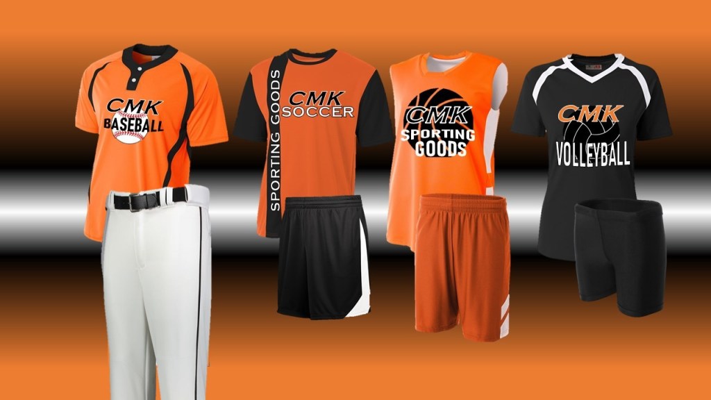 The truth is, there are too many uniform options to list. CMK can provide uniforms from Champro, A4, Augusta, High Five, Rawlings and Russel Athletic. We will help with design and give the best pricing we can. Uniforms for different levels of Baseball, Basketball, Football, Volleyball, and Soccer. Please call or write to go over options. Thank You.